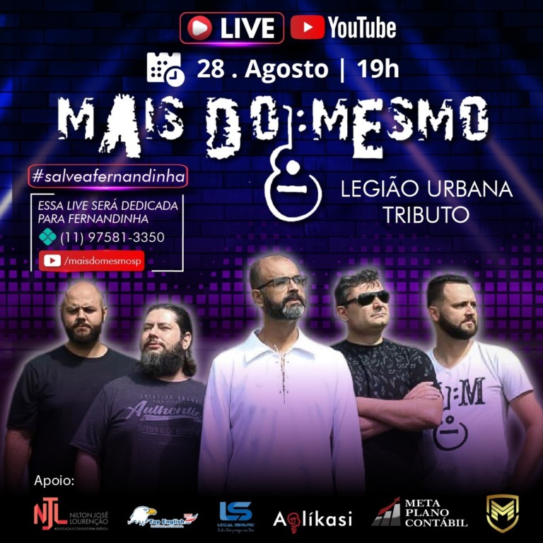 A banda jundiaiense Mais do Mesmo foi fundada em março de 2000, com a proposta de homenagear a Legião Urbana, e no dia 28 de agosto realizará uma live com clássicos do trio que transformou o rock nacional, em prol de Fernanda Manzutti, de 11 anos de idade.