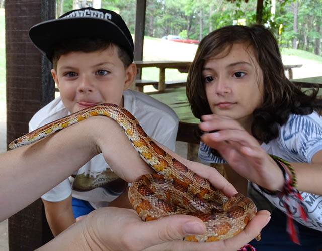 Alguns dos animais que participam das atividades de educação ambiental irão até o Espaço Kids para que os visitantes possam conhecê-los, aprender sobre eles com um educador e até tocar em alguns deles. Os animais que participarão da atividade e os horários são divulgados no dia, em um quadro no Espaço Kids.
