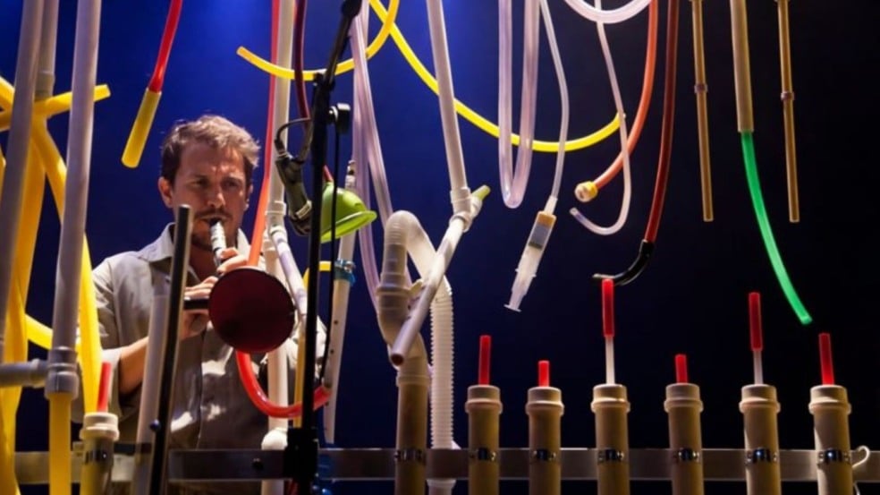 Criação de instrumento híbrido que une flauta, boneco e percussão.