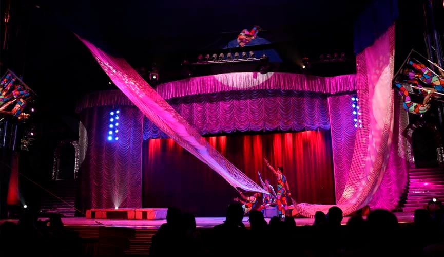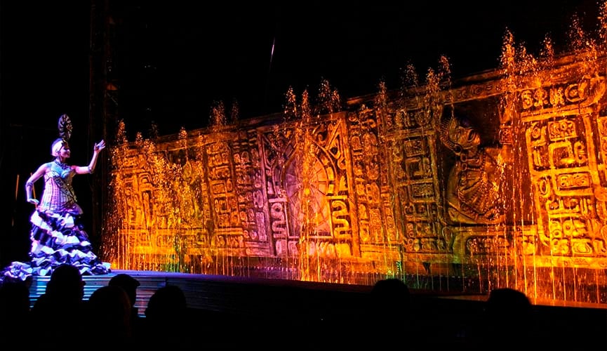 É nesse verdadeiro complexo arquitetônico, no qual se combina beleza cênica, luxo e conforto, que Tihany Spectacular apresenta 16 atos distribuídos em uma exibição de mais de duas horas.