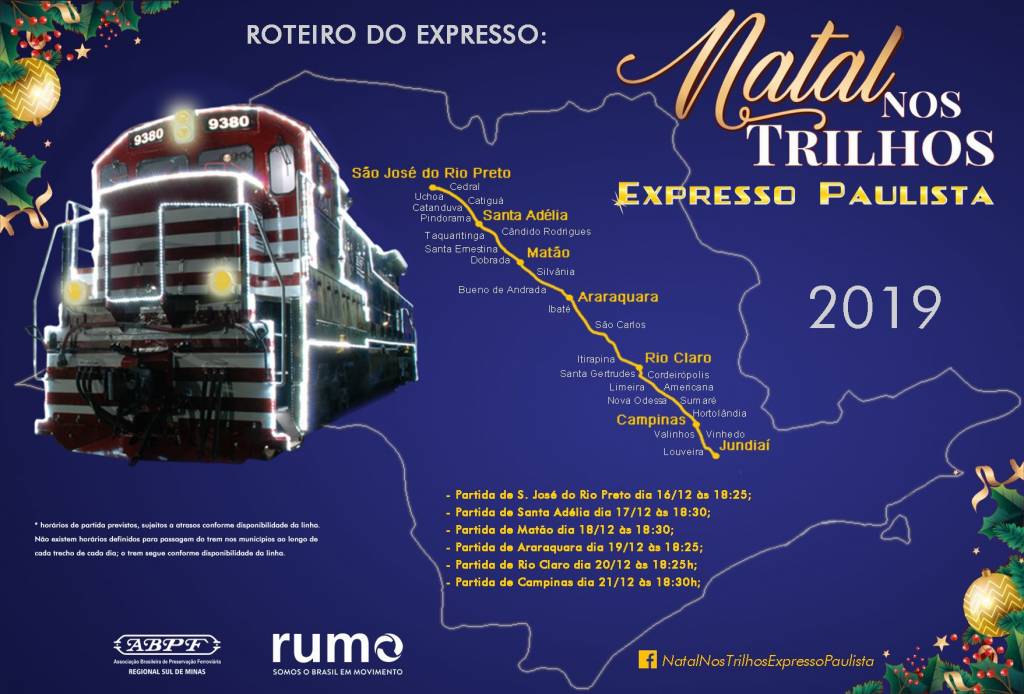 Partindo de São José do Rio Preto no dia 16 de dezembro, o trem vai passar por 25 cidades. Jundiaí é a última cidade e representa o fim da jornada do trem que leva consigo o encanto do Natal.