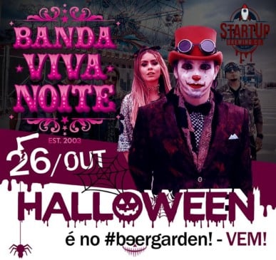 Pra fechar o mês, no dia 26 será dia de Halloween, com a banda “Viva Noite”.