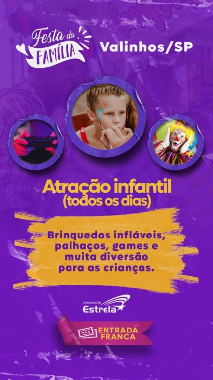 A Festa da Família foi criada com o intuito de oferecer entretenimento, diversão, lazer e segurança para toda a família ter um lugar para passar agradáveis momentos com aqueles que mais amam. E, com a contribuição da população, através da doação de alimentos, também será possível ajudar muitas famílias que passam por dificuldades, especialmente neste período de vulnerabilidade econômica e social.