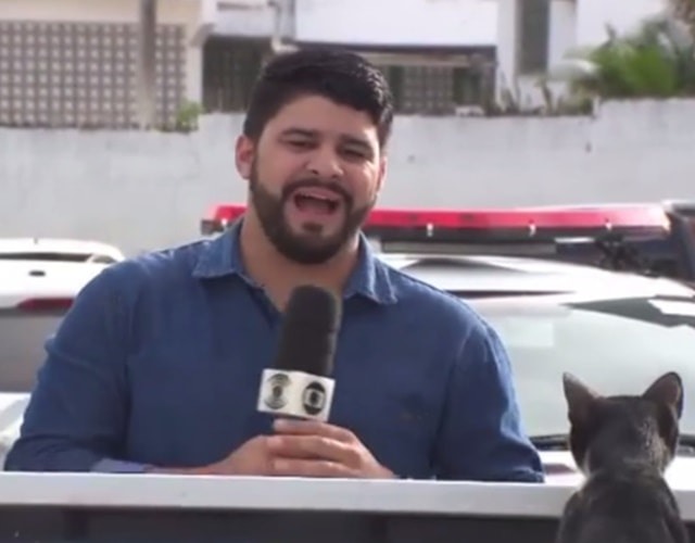 “Aquela hora que você tá gravando o texto e sente um gato passando entre as pernas. Mas ele foi tão fofinho que não dá nem pra sentir raiva. Já pensou se fosse ao vivo? E quando mudei de lugar ele foi lá também. Acho que esse gato queria era ficar famoso. E tá conseguindo”, diz o repórter.