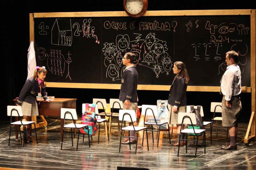 Sinopse: Davi, Lucas, Lucinha e Júlia têm 9 anos e 1 hora para dar esta resposta em forma de seminário, na frente da classe inteira e do professor bem bravo. Só que Davi tem uma irmã, um meio-irmão e duas meias-meias-irmãs; tem uma mãe e um meio-pai, um pai e uma meia-mãe, um meio-meio-pai e uma meia-meia-mãe. Lucas tem uma irmã, um pai e uma mãe; quando briga com a irmã, ele vai pra casa dos avós. Lucinha tem pais que nem se falam; mora só com a mãe; e queria ter um irmão pra brincar. Júlia não tem irmãos, mas tem tudo em dobro; mora metade da semana com o pai e metade da semana com a mãe. Então, eles não sabem o que dizer: família é um grupo de pessoas com laços de sangue? Ou um grupo de pessoas que moram na mesma casa? Ou um grupo de pessoas que se gostam? Ou um grupo em que há pai mãe-filhos? Ou é tudo família?