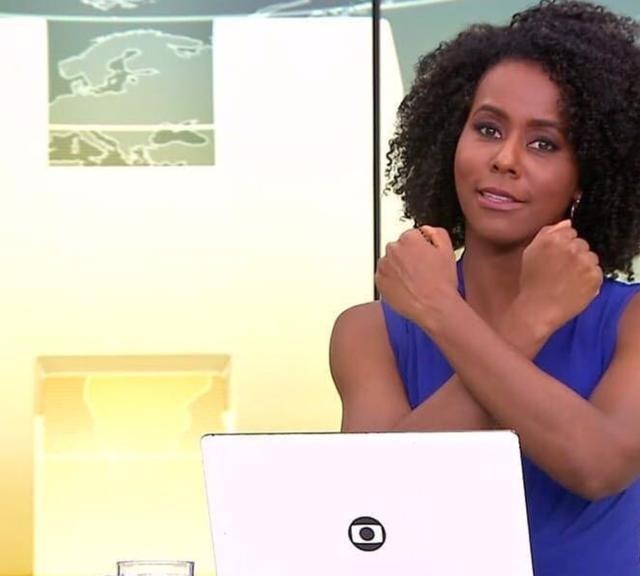 A apresentadora cruzou os braços na frente do peito e disse “Wakanda forever”, símbolo do personagem Pantera Negra, interpretado por Boseman.