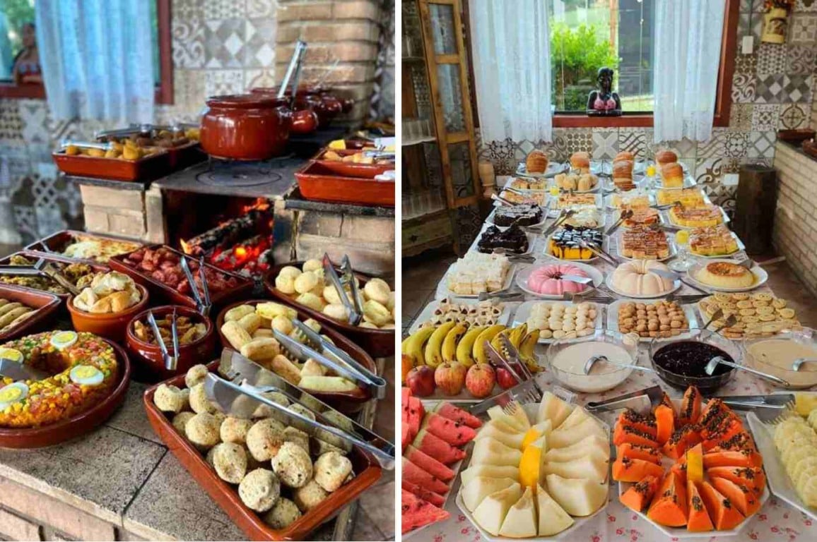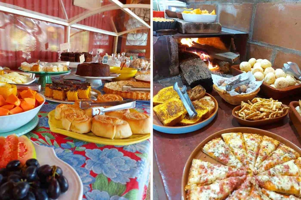 Em meio à natureza, após o café é possível descansar no redário, e as crianças podem brincar no parquinho e alimentar as galinhas. O café é servido aos domingos e feriados, das 8h às 12h30. O valor é de R$ 57,90; crianças de 6 a 12 anos pagam R$ 20.