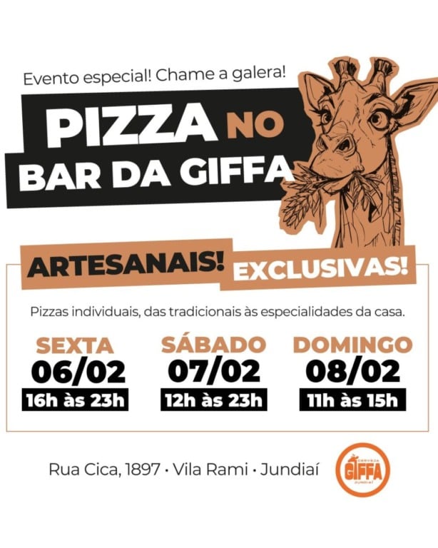A Cervejaria Giffa, de Jundiaí, dá início às comemorações de seus 10 anos com um evento especial: o Dia da Pizza. A festa ocorre neste final de semana, nos dias 6, 7 e 8 de fevereiro, no Bar da Giffa.