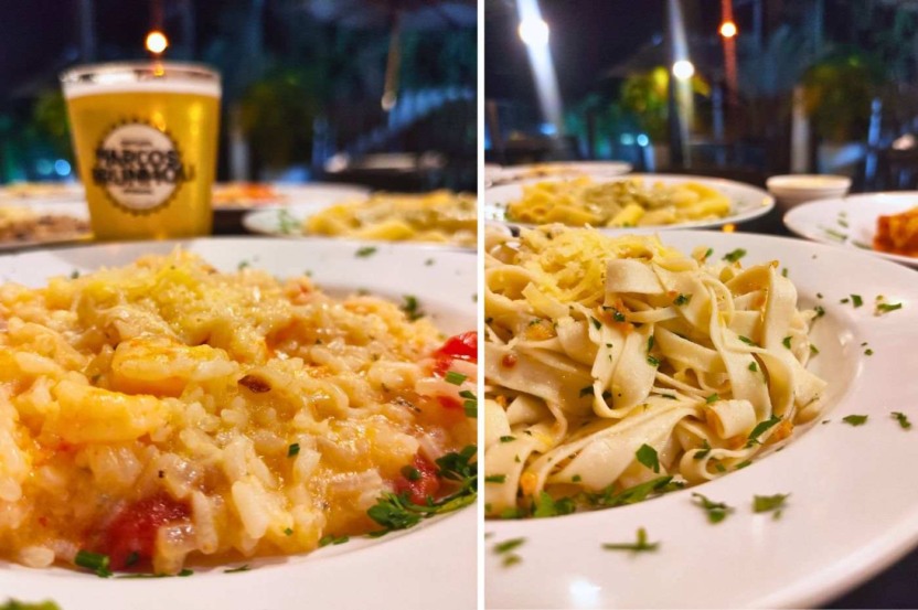 No entanto, a grande estrela da noite são os risotos, com seis versões de dar água na boca: alho-poró, tomate seco, abobrinha com gorgonzola, filé-mignon com berinjela, funghi, e camarão.