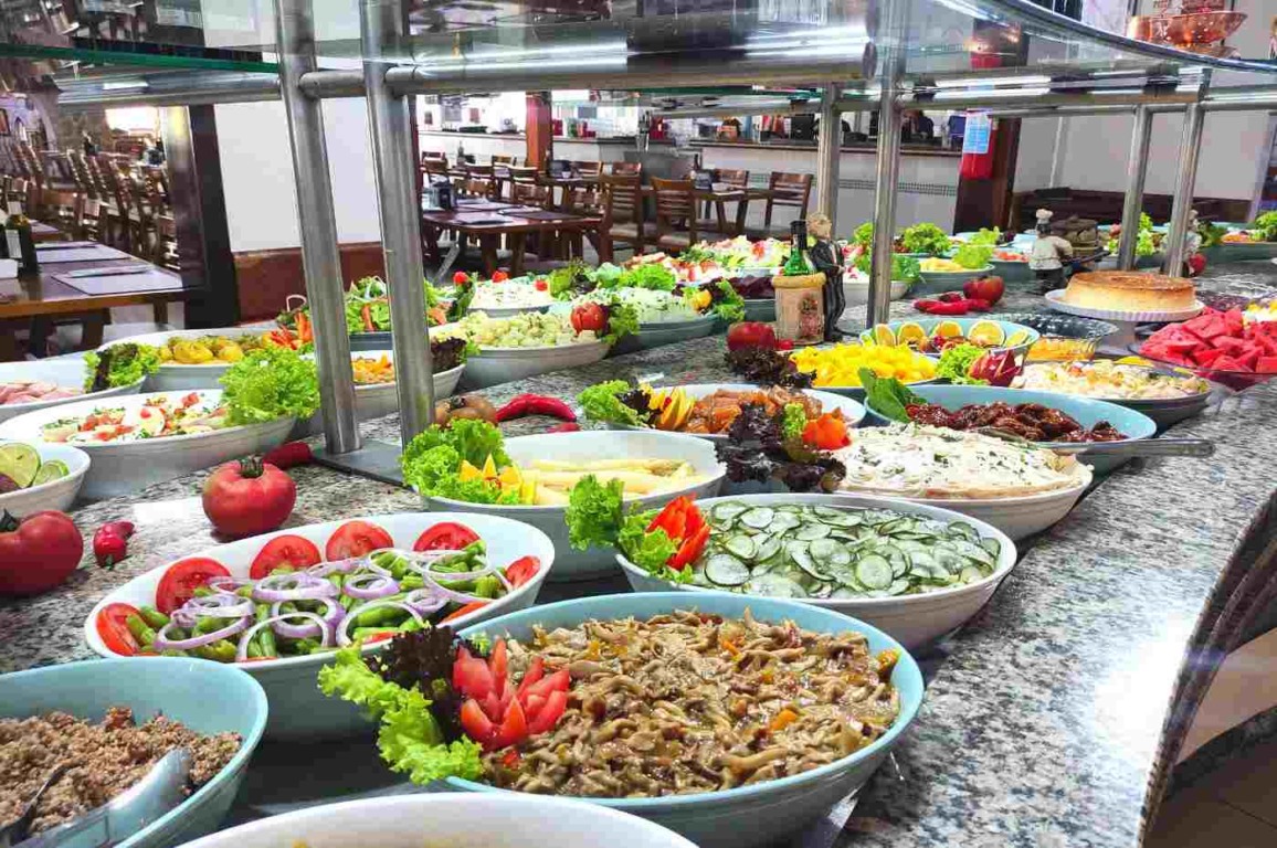 Durante o almoço, a casa oferece o tradicional churrasco, também acompanhado do bufê com mais de 40 opções de saladas e frios, pratos quentes, massas e sobremesas. Estão disponíveis cortes variados de carnes, como picanha, alcatra, costela, cupim, fraldinha, maminha, linguiça e frango, acompanhados de pão de alho, queijo coalho e muito mais. É uma opção perfeita para aqueles que desejam saborear um almoço completo e saboroso.