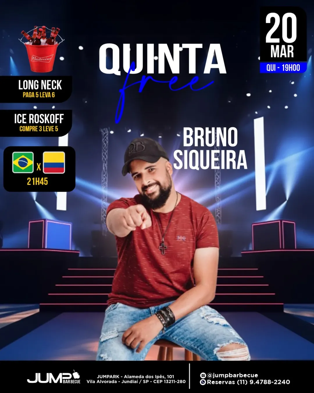 Além disso, o Jumpbarbecue transmite ao vivo as eliminatórias da Copa do Mundo, com o duelo entre Brasil x Colômbia, a partir das 21h45. Venha torcer com a galera e aproveitar o ambiente descontraído!