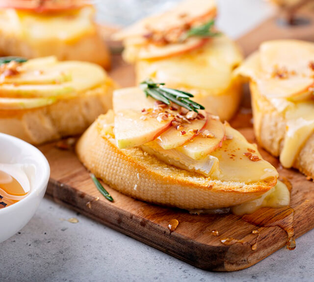 Preparo: Acomode as fatias de pão em uma forma. Acrescente o azeite e, em seguida, as fatias de pera. Regue a pera com mel e finalize com as fatias de queijo brie por cima. Leve ao forno, em fogo baixo, por cerca de 10 minutos antes de consumir.