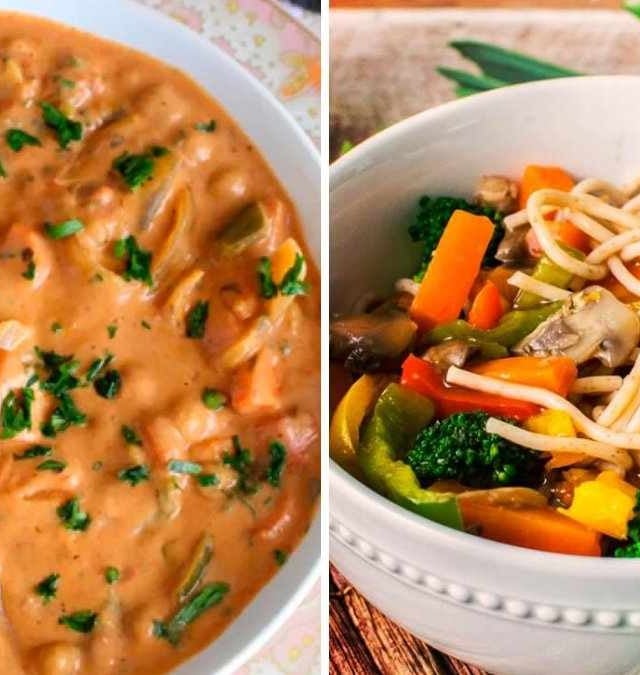 As receitas vegetarianas e veganas variam com opções do dia, com entrada, prato principal e sobremesa. Entre as sugestões de prato está o risoto de arroz integral cateto, vermelho ou negro com ervas finas, castanhas e peras, a feijoada vegana ou a massa com cogumelos ao vinho branco e porpettas vegetarianas.