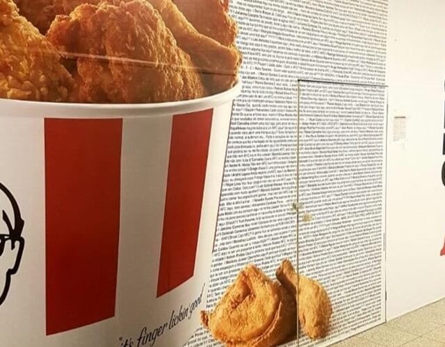 Com o local definido, uma propaganda estampa as paredes: “Você pediu, o KFC ouviu. O melhor frango do mundo chegou”.