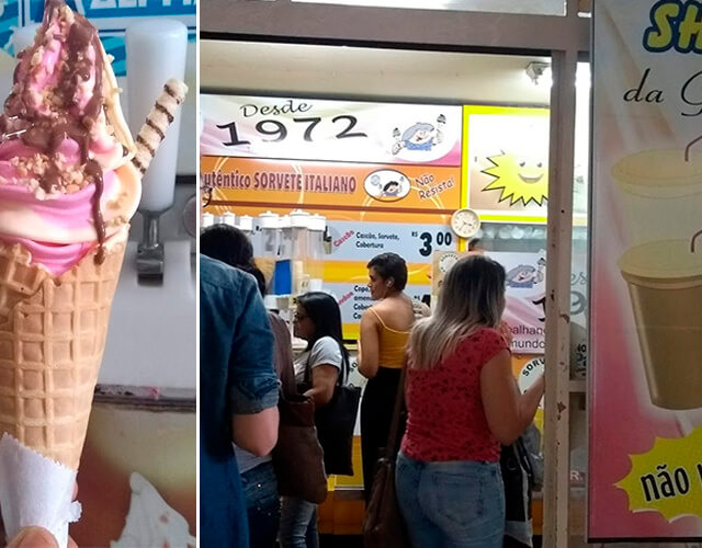 “O de creme com chocolate é o meu preferido. Só pego desse e só pego aqui. Sempre que venho no Centro, passo aqui”, afirmou Geralda dos Santos, que estava na fila à espera do seu sorvete.