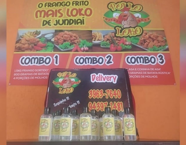 Na compra de qualquer combo de frango frito, o cliente ganha um frasco de 60 ml de álcool em gel, com direito a reabastecimento a cada compra até o fim do isolamento social.