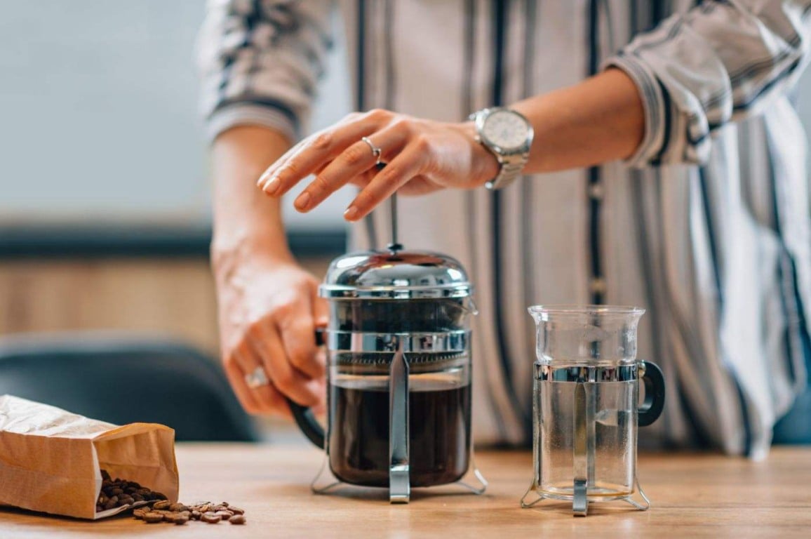French press ou prensa francesa é um método de imersão em que água quente e café moído são misturados em uma jarra e, em seguida, pressionados para baixo com um pistão para separar o café do líquido. O resultado é um café encorpado e rico em sabores. Recomenda-se o uso de pó de moagem grossa.