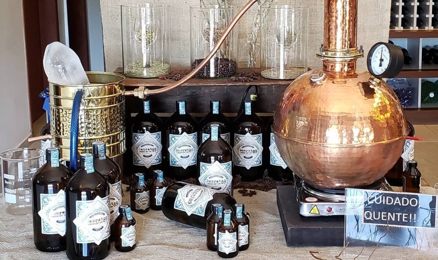 Os produtos da Brunholi Brands podem ser degustados e, no caso do gin Decreto89, é possível até ver como ele é destilado e sentir todos os aromas deste processo. O local também tem massas, molhos, conservas, antepastos e geleias da Brunholi Gourmet.