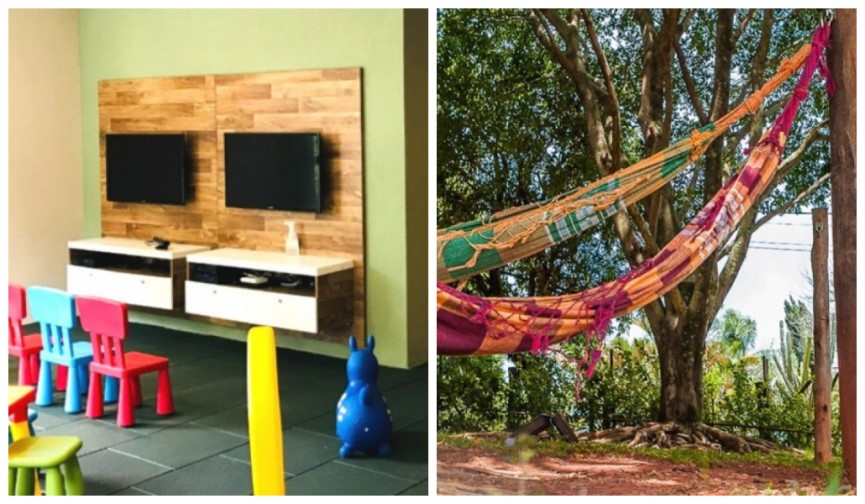 As crianças poderão escolher entre o espaço kids, que conta com brinquedoteca e monitores aos finais de semana. A Mini Fazenda é outro espaço que chama muito a atenção, pois os pequenos terão experiência com os bichos, vão poder passear pelo pomar e também fazer uso do playground externo e da Casinha de Boneca.