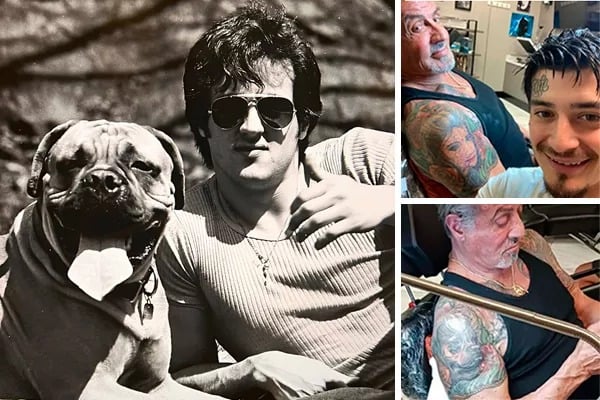 Após a surpresa da ida de Jennifer ao tribunal, nesta segunda-feira (22) Stallone foi até um estúdio para cobrir uma tatuagem do rosto da mulher no braço. O desenho escolhido para substituir a esposa? O rosto de Butkus, seu falecido cachorro de estimação.
