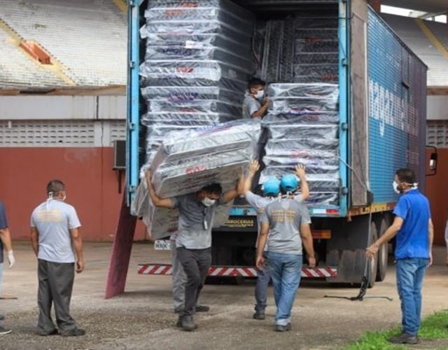 Uma das maiores doações partiu da Magazine Luiza que doou 1 mil colchões e 1 mil travesseiros para acomodar o grupo acolhido.