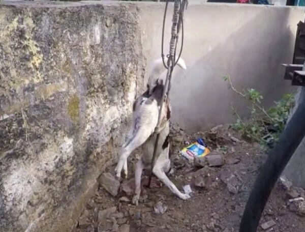 Uma cachorrinha que foi abandonada em uma construção fantasma de Rajasthan, na Índia, passou por maus bocados até ser resgatada por uma equipe de voluntários local. De acordo com o portal Zoorprendente, a cadela foi intencionalmente presa a uma barra de metal, de modo que sofresse ali sozinha e sem qualquer ajuda.