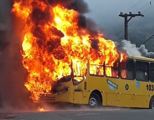 Ainda segundo a corporação, o fogo teria começado após uma uma pane elétrica do veículo, quando o motorista fazia manobra para embarque de passageiros.