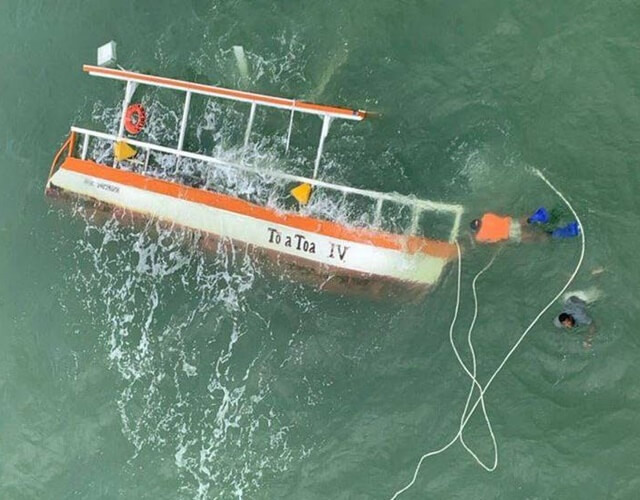 De acordo com o Corpo de Bombeiros, duas mulheres de 65 e 67 anos morreram. Cerca de 60 pessoas estavam na embarcação, sendo 2 palestrantes e 6 tripulantes.