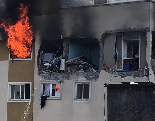 De acordo com a Polícia Militar, a explosão foi registrada no imóvel e, então, houve o incêndio. As paredes do apartamento desabaram, e as chamas tomaram de conta dos cômodos.