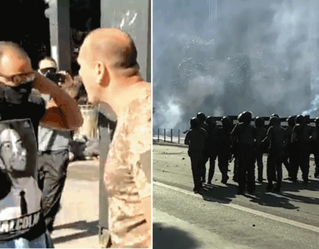 A Polícia Militar se colocou entre os dois grupos, mas mesmo assim houve tensão. Logo após, por volta das 14h, houve outro confronto dos manifestantes pró-democracia.