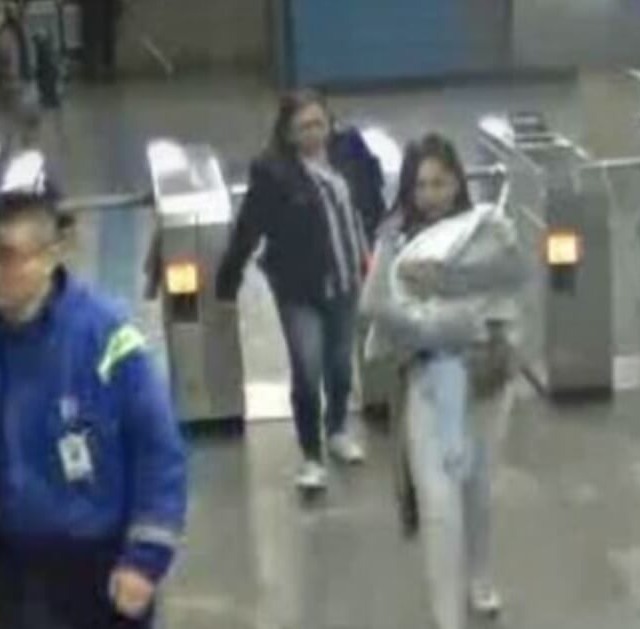 O circuito interno de segurança da plataforma registrou o momento em que a mãe sai da composição e encontra e equipe do Metrô em busca de socorro.