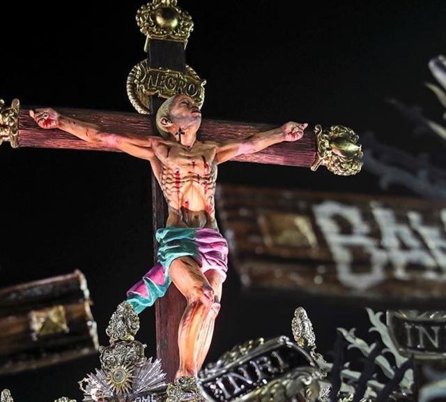 Para representar um versão moderna da vida de Jesus Cristo, a Mangueira o representou como índio, mulher e morador de rua. Logo na comissão de frente, ele apareceu e sua representação clássica, um homem branco de cabelos longos e barba, sofrendo uma repressão policial.