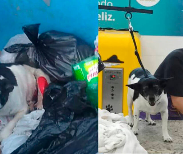 Uma cadela idosa foi resgatada de dentro de uma lixeira em Botucatu, interior de São Paulo, onde foi abandonada à própria sorte. Ela foi resgatada e levada para a ONG Liga do Bem, que está tratando de um tumor ulcerado da cachorra. No abrigo, ela ganhou o nome de Florzinha.