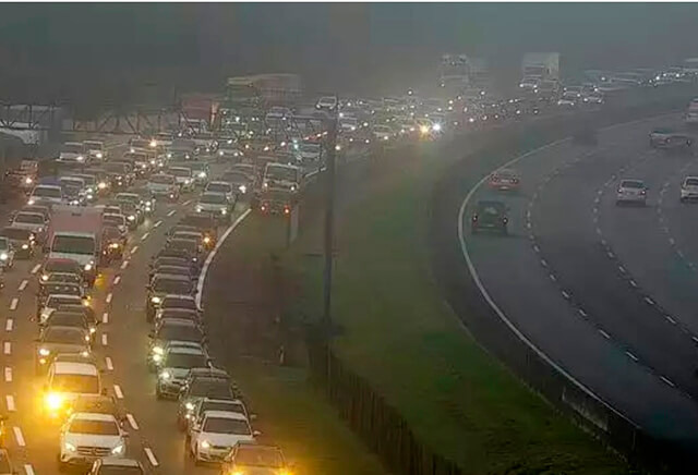 Na Imigrantes, o congestionamento vai do km 26 ao km 43. Já na Anchieta, motoristas encontram lentidão do km 27 ao km 31.
