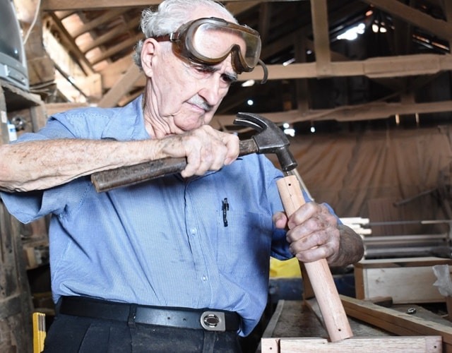 Atualmente, o aposentado faz produz as muletas e bengalas como passatempo. Mas, com as dificuldades para se manter em pé, ele recebe a ajuda do filho e neto que preparam a madeira que será usada na confecção dos objetos.