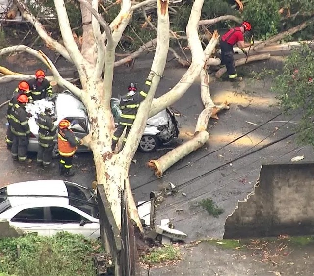 Durante as chuvas da tarde desta terça-feira (1º), em São Paulo, uma árvore caiu em cima de um carro e quatro pessoas ficaram presas nas ferragens. A motorista do veículo não resistiu aos ferimentos e morreu.