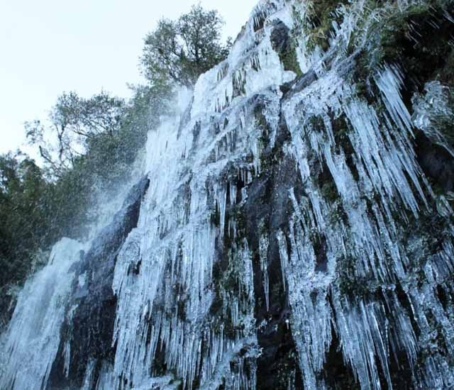 As temperaturas negativas registradas na Serra catarinense nos últimos dias já fazem com que a cascata Morro das Torres, em Urupema, esteja congelada há quatro dias.