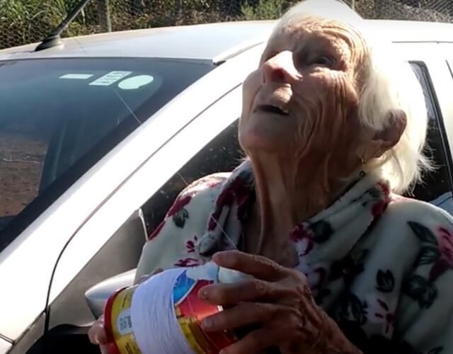 No vídeo, Dona Conceição chega a perder o objeto de vista. “Onde que está ela que eu não tô enxergando? Ah tá lá”, diz, arrancando risadas de quem está perto.