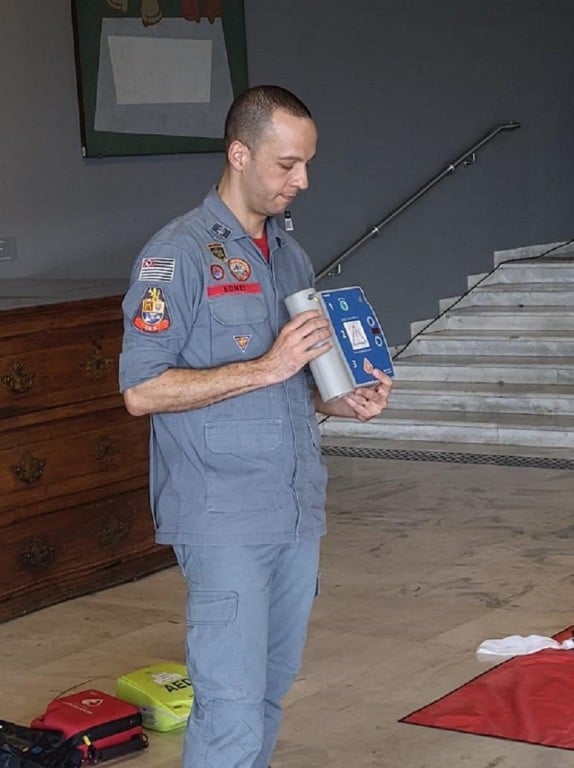Com uma experiência de 22 anos no Corpo de Bombeiros, o sargento Ednei Santos é um dos responsáveis pelo material didático disponibilizado nos cursos online. Ele destaca a facilidade de uso do site e a capacidade de qualquer pessoa aprender noções básicas de primeiros socorros. Além dos recursos online, Santos ministrou cursos presenciais para funcionários de escolas públicas, ressaltando a importância de cada indivíduo estar preparado para salvar vidas em situações de emergência.