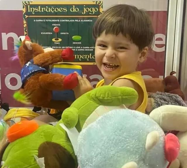 Samuel de apenas dois anos viveu uma grande aventura no Norte Shopping na última terça-feira (16), conseguindo entrar na máquina de pegar pelúcias do centro de compras.