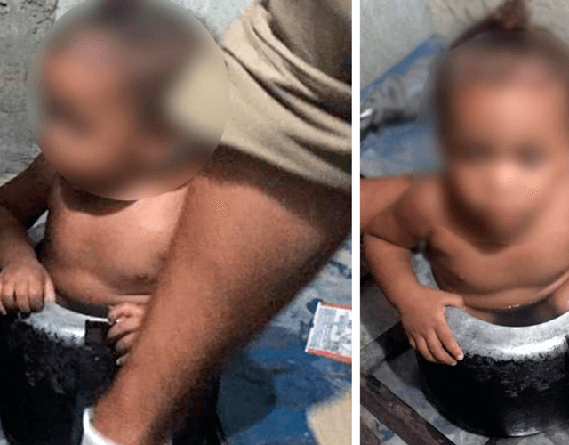 Os agentes da corporação tentaram retirar a criança da panela, mas sem sucesso, precisaram utilizar ferramentas de corte para resgatá-la.