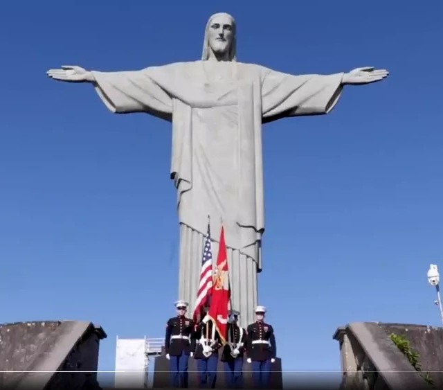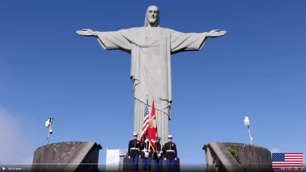 No vídeo, as imagens mostram fuzileiros navais dos Estados Unidos em pontos conhecidos no Brasil, como a Esplanada dos Ministérios, em Brasília e o Cristo Redentor, no Rio de Janeiro.