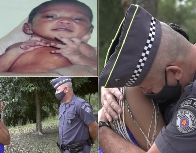 Cabo Oliveira encontrou Carolina recém-nascida enrolada numa folha de jornal sobre a areia fria da praia. “Não sabia o que ia acontecer com ela. Se ela ia sobreviver”, disse em entrevista ao ‘Fantástico’.