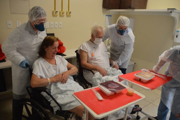A equipe de saúde do Hospital Santa Isabel, em Blumenau, Santa Catarina, organizou uma surpresa para um casal de idosos que estava internado com Covid19.