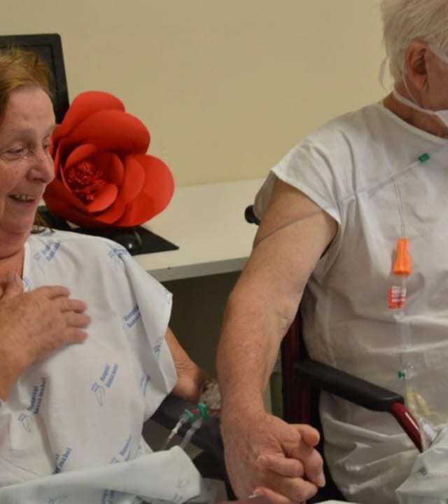A equipe de saúde do Hospital Santa Isabel, em Blumenau, Santa Catarina, organizou uma surpresa para um casal de idosos que estava internado com Covid19.