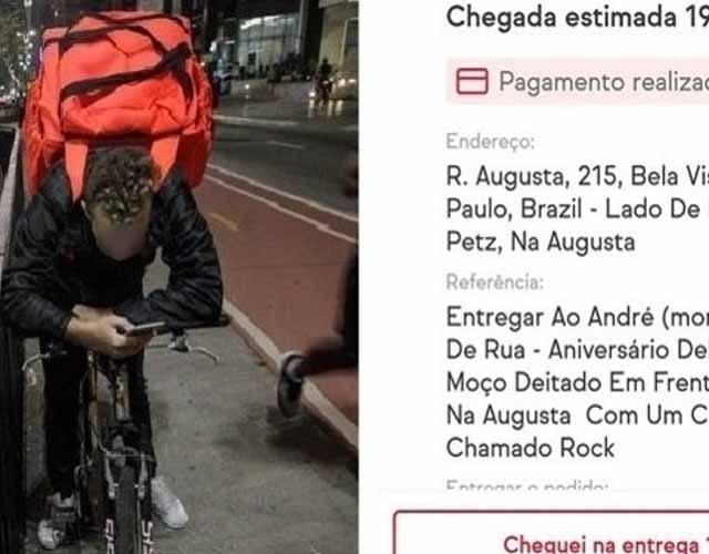 O entregador Cristopher Jonas recebeu um pedido um tanto quanto especial: levar um lanche para um morador de rua que fazia aniversário na tada da entrega, nesta quarta-feira (18).