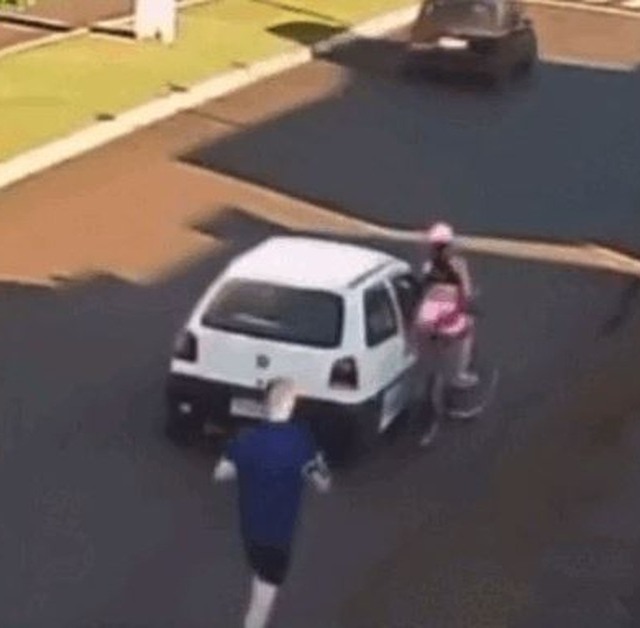 Nas imagens postadas, dá para ver o momento em que Andressa passa de bicicleta e o passageiro de um carro coloca a mão para fora e toca nas nádegas dela. Nesse momento, ela se desequilibra e cai. Algumas pessoas que presenciaram a ação ajudaram Andressa a se levantar.