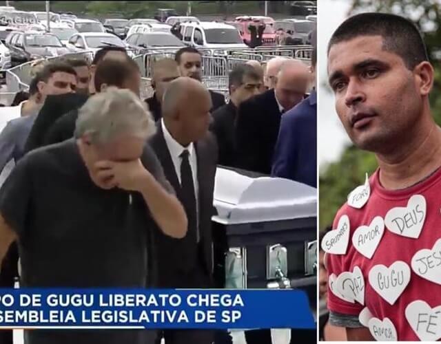 O corpo de Gugu chegou na Alesp, por volta das 10h20 desta quinta-feira (28), para o início do funeral. O caixão foi carregado pelo filho mais velho do apresentador, de 18 anos, João Augusto Liberato.