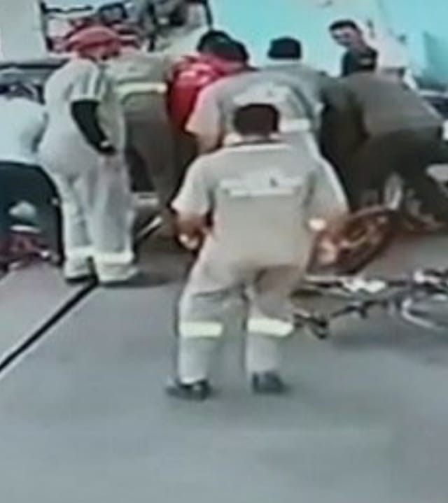 Enquanto andava de bicicleta em Várzea da Palma (MG), uma menina de 12 anos foi atropelada por um carro que entrava em um posto de gasolina. A garota passava na rua em frente ao estabelecimento quando o motorista virou e a acertou.