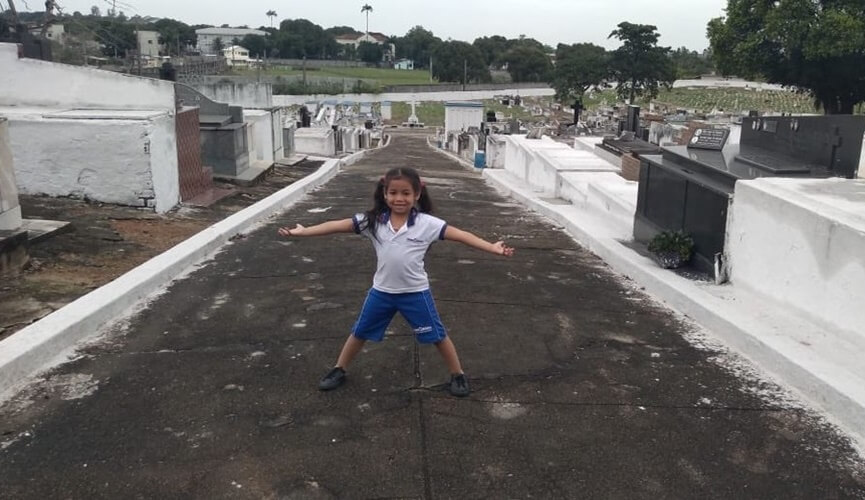 “Eu perdi meu sogro faz um ano. Não a levei ao velório nem ao enterro, mas ela nos ouviu falando e ficou com muita curiosidade para ir ao cemitério. Além disso, ela adora filme de terror. Já viu ‘Anabelle’, já viu ‘A Freira’, então ficou querendo ver como era um cemitério. Eu falei que qualquer dia a levava e ela ficou toda contente”, contou Ana Carolina, mãe de Luana.